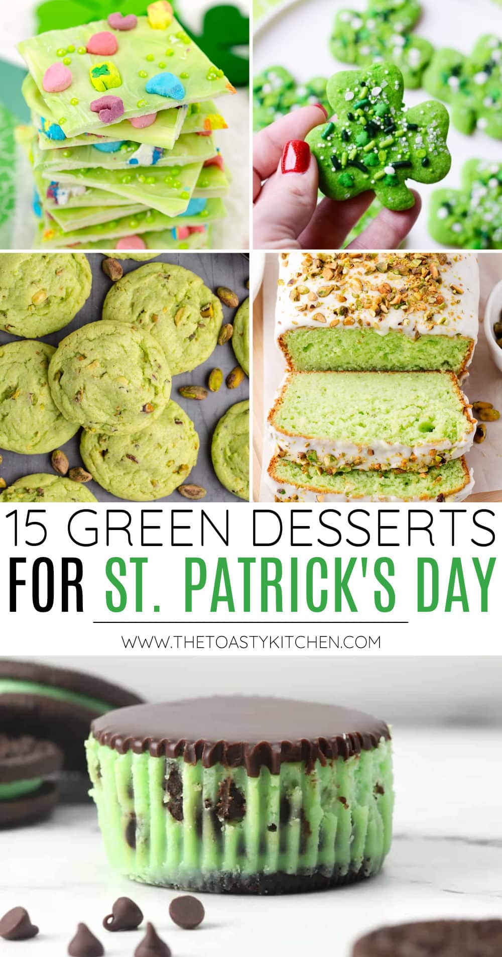 Make a festive green dessert to celebrate St. Patrick's Day! I've rounded up 15 fun green treats for sharing like chocolate bark, cupcakes, and mini cheesecakes.