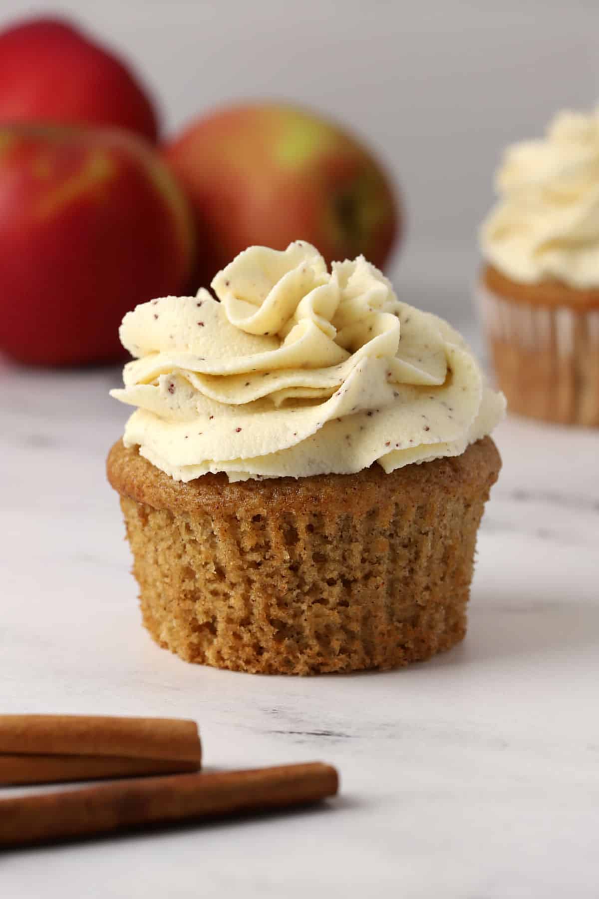 Frosting: Cupcakes are topped with sweet buttercream frosting made with brown butter that adds caramelized, nutty flavor.