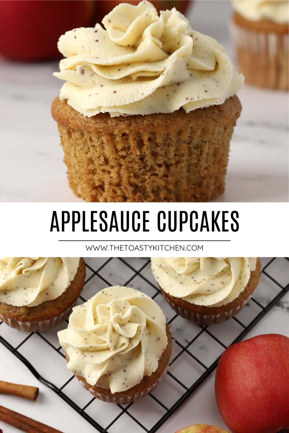 Applesauce cupcakes will be your new favorite fall dessert. Moist and tender cupcakes are filled with applesauce and cozy spices and topped with a sweet brown butter frosting.