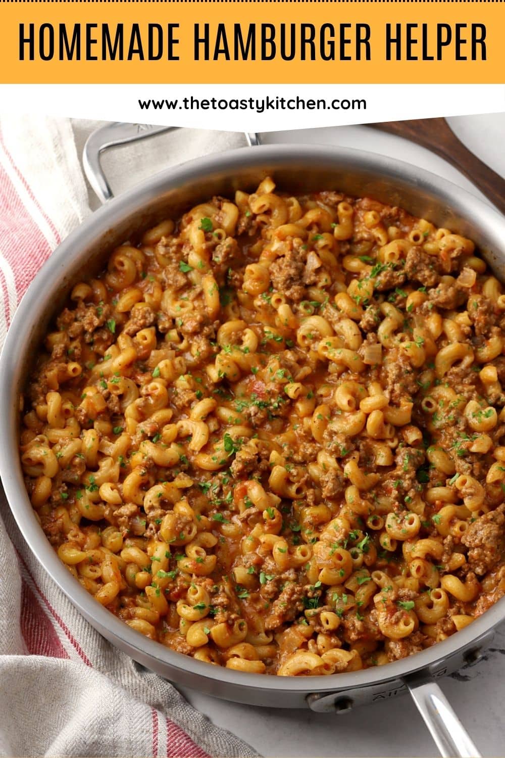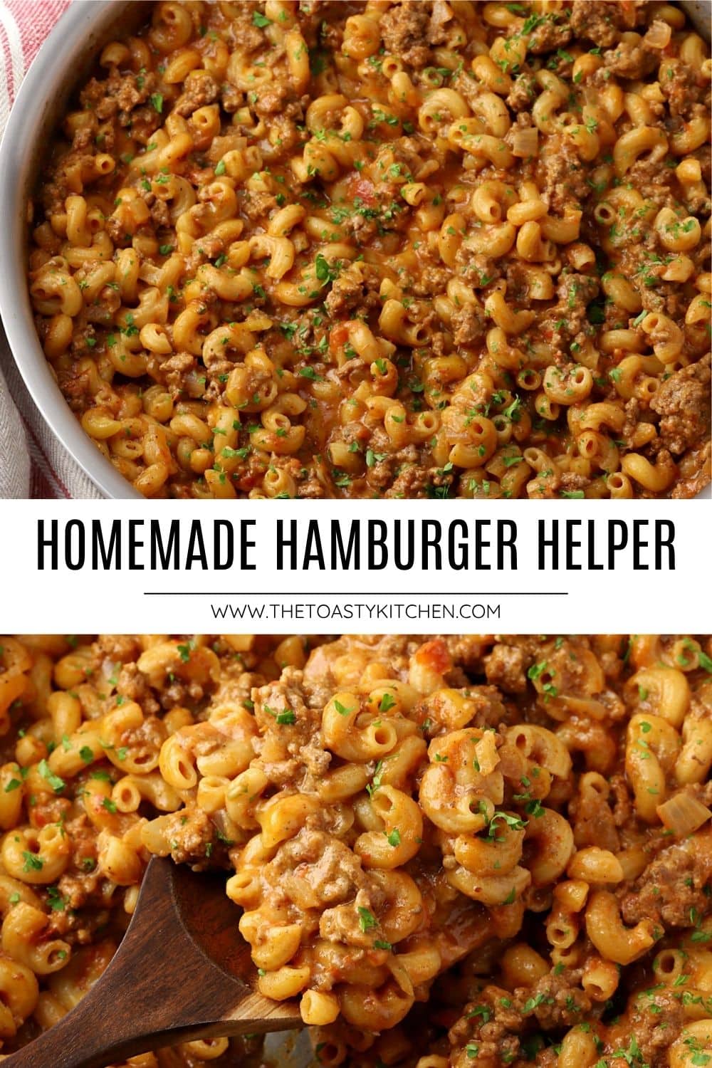 Homemade hamburger helper is a from-scratch version of the classic boxed meal. Beef and macaroni come together in a cheesy and flavorful seasoned sauce. All you need is a single pan and thirty minutes!