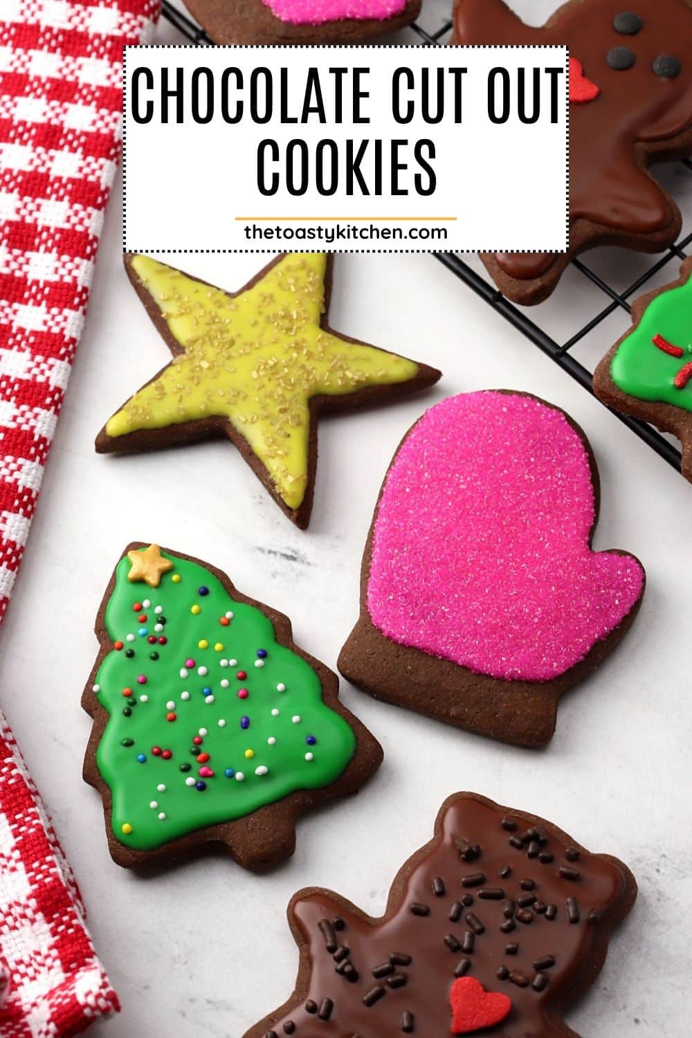 Chocolate cut out cookies are made with an easy dough that doesn't spread when baked! They're topped with a simple vanilla glaze that's easy to color and decorate for any season.