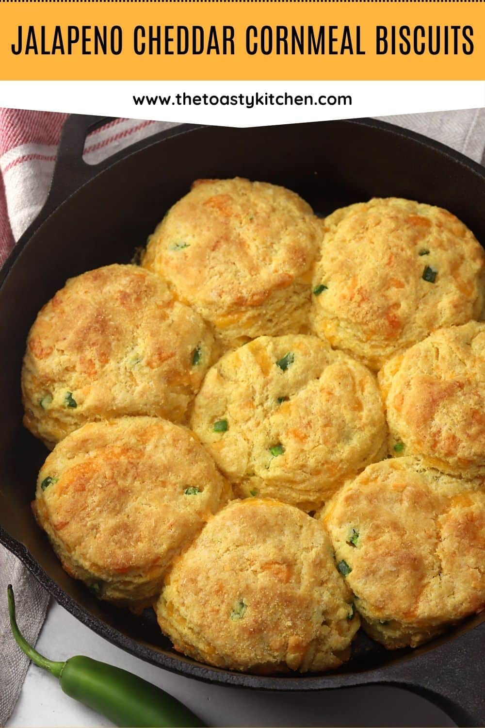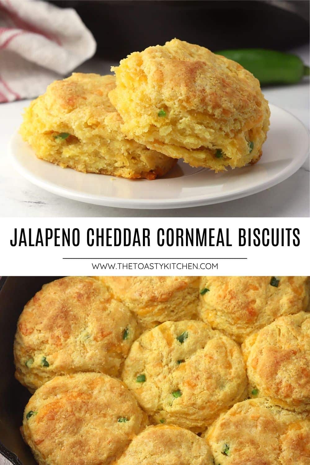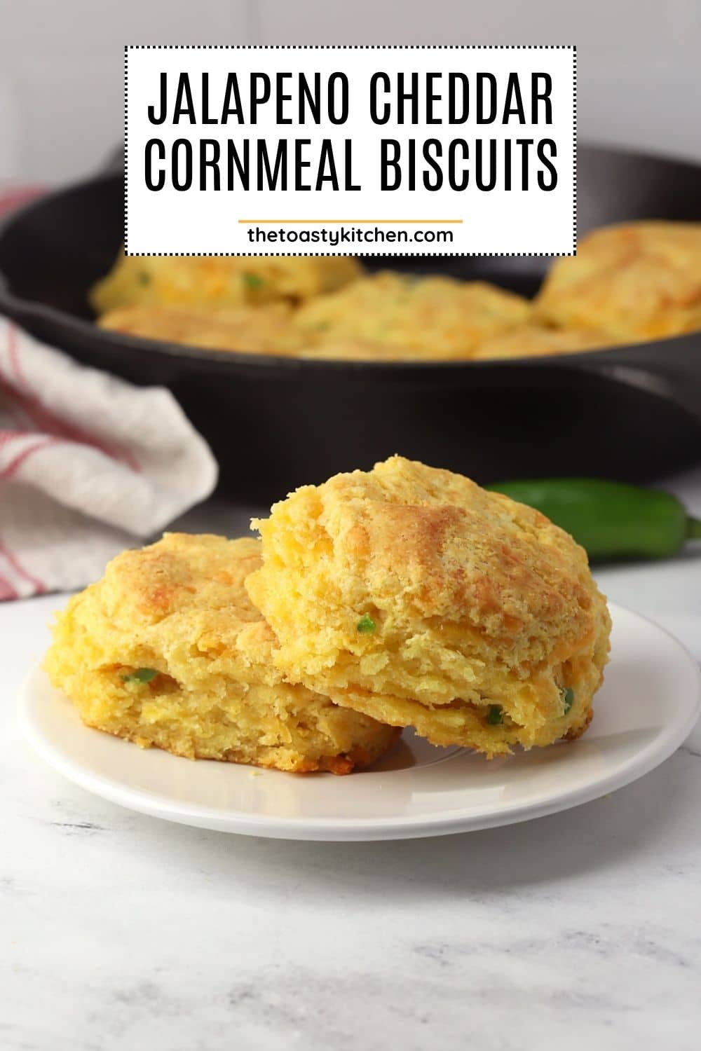 Jalapeño cheddar cornmeal biscuits are the perfect companion for your next bowl of soup or chili. They're flaky, tender, and filled with jalapeños and melty cheddar cheese.