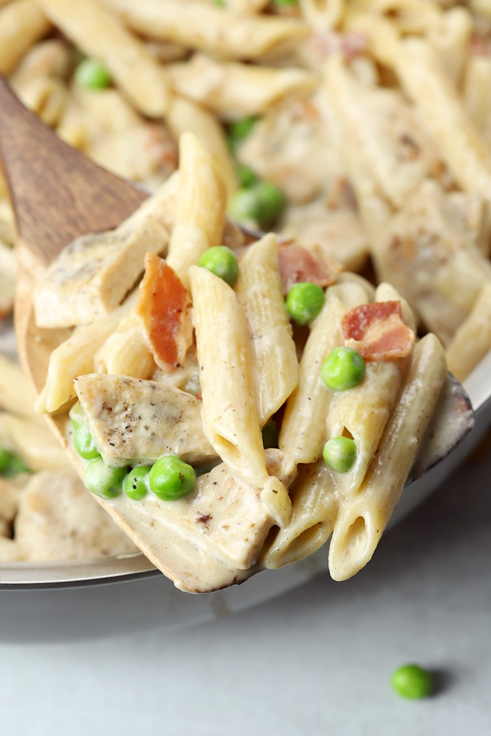 - Thanksgiving leftovers - This recipe is perfect for using up leftover Thanksgiving turkey, shredded rotisserie chicken. Bacon can be substituted with leftover cubed holiday ham. Peas can be substituted with leftover corn or green beans.