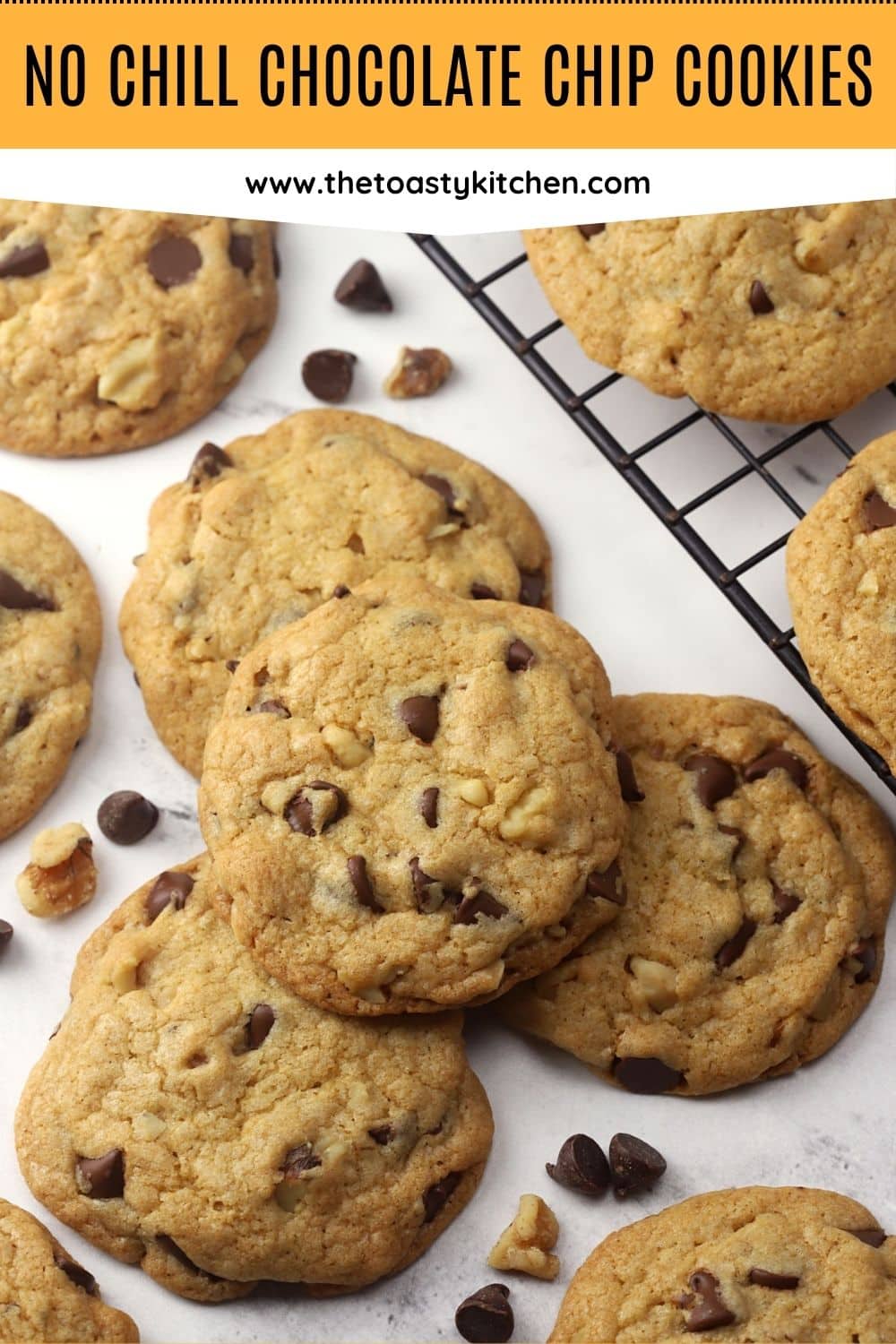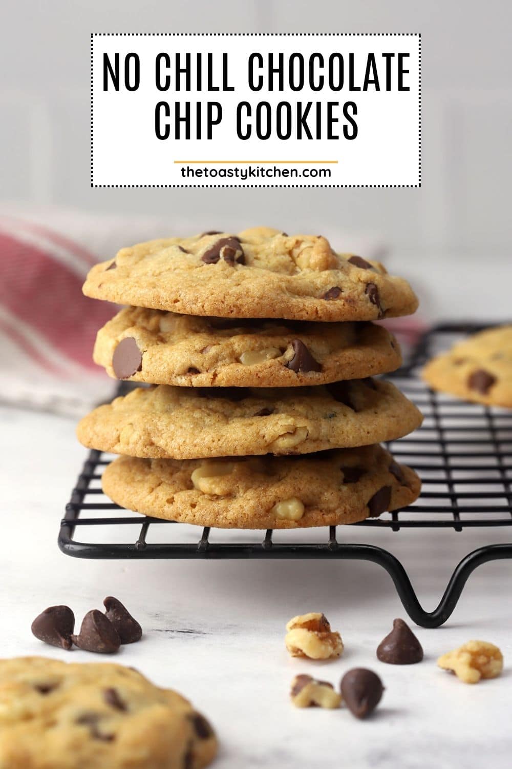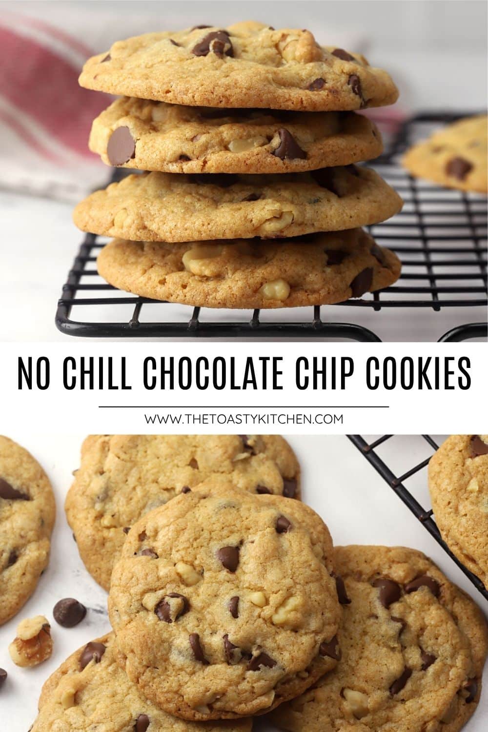 Make a batch of no chill chocolate chip cookies in about 30 minutes. They're soft, chewy, and filled with melty chocolate chips. No chilling and no mixer needed!
