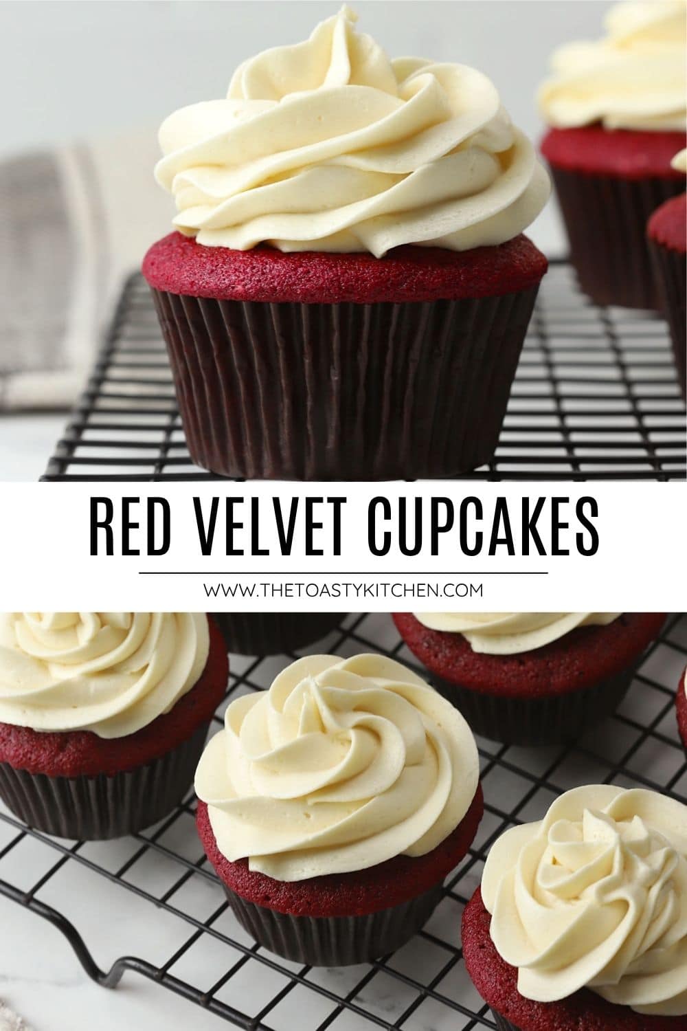 Texture: Tender and moist red velvet cupcakes are topped with a velvety, less-sweet ermine frosting.