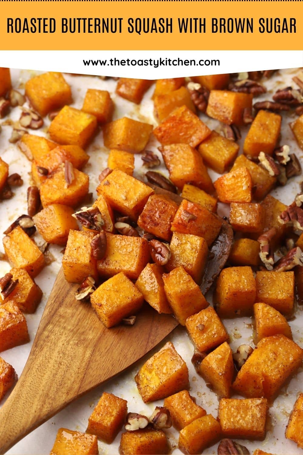 Roasted butternut squash with brown sugar is an easy side dish that's filled with comforting fall flavor. Cubed butternut squash and pecans are coated in brown sugar and cinnamon, then roasted until tender in the oven.
